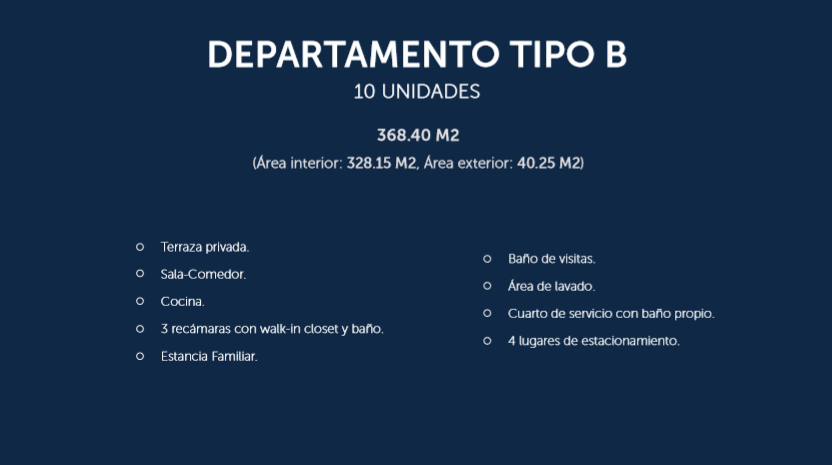 El proyecto cuenta con 24 departamentos, desde 368 m2, que otorgan un gran balance entre lujo, exclusividad y seguridad.